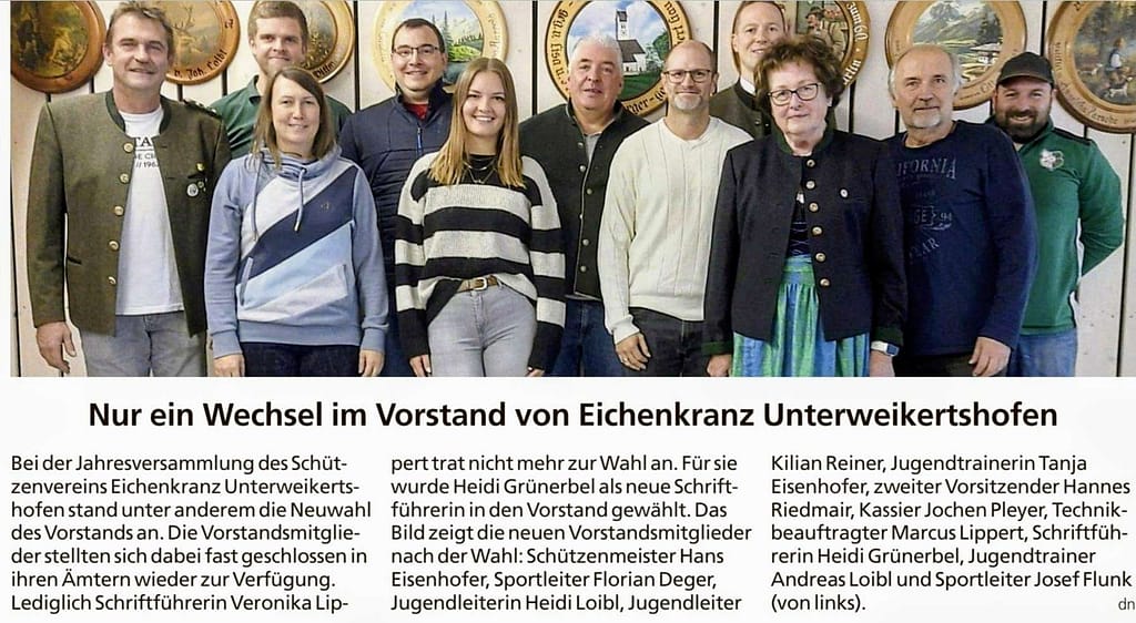 Hans Eisenhofer (2. Platz Senioren), Dieter Sedlmeir (König Senioren), Ruth Sedlmeir (3. Platz Senioren), Madlen Schlothauer (3. Platz Schützen), Tanja Eisenhofer (Königin Schützen), Josef Goltz (2. Platz Jugend), Ben Pleyer (3. Platz Jugend), Johannes Biberger (König Jugend), Suppmair Andreas (3. Platz Zimmerstutzen), Alfred Reiner (2. Platz Zimmerstutzen), Jochen Pleyer (König Zimmerstutzen).